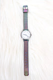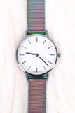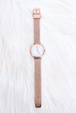 This simply chic watch features a metallic round case, minimalist stick indexes mark, adjustable buckle mesh strap, and stainless steel case back.