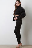 Scuba Ruched Sleeves Crop Jacket With Legging Set