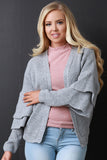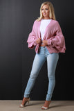 Open Front Statement Sleeves Sweater Knit Cardigan