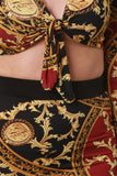 Filigree Printed Self Tie Crop Top With Midi Skirt Set