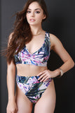 Tropical Leaf Surplice High Waisted Bikini Set