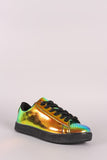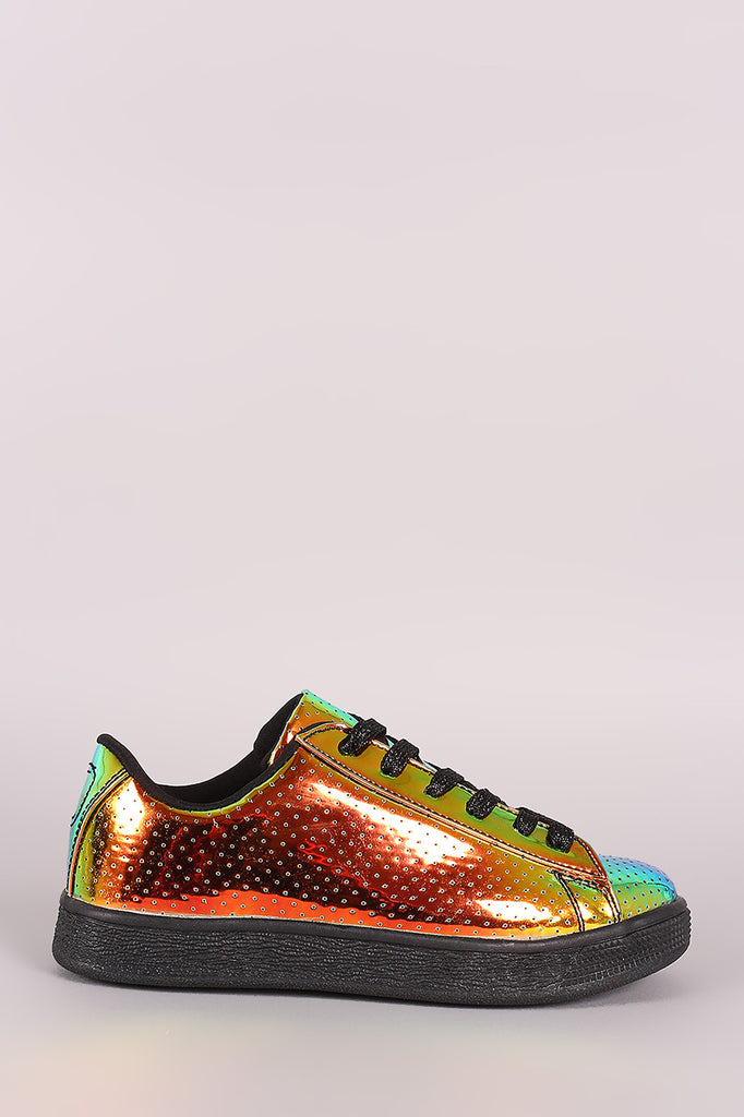 Qupid Perforated Holographic Low Top Lace Up Sneaker