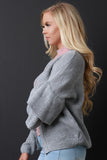 Open Front Statement Sleeves Sweater Knit Cardigan